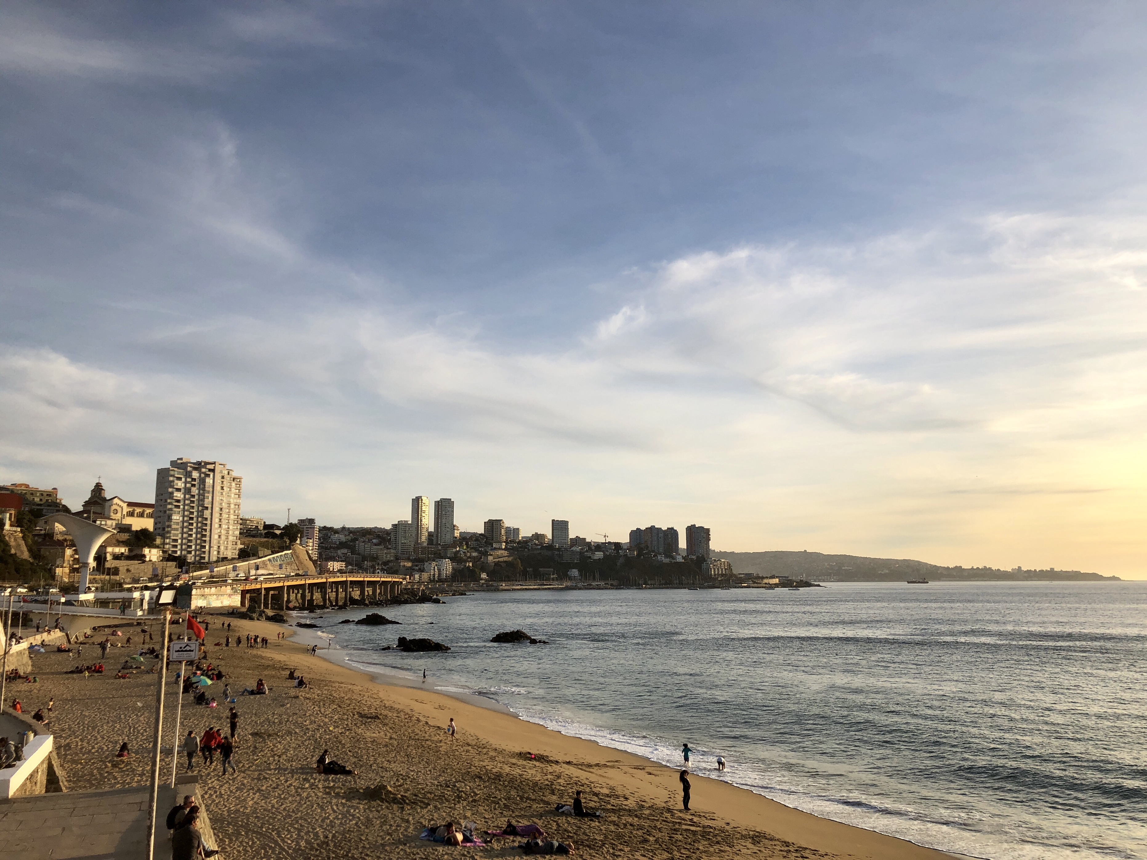 언덕 가득 빼곡하게 집들이 들어선 발파라이소와 달리 해안선을 따라 현대적인 건물들이 늘어서 있습니다.