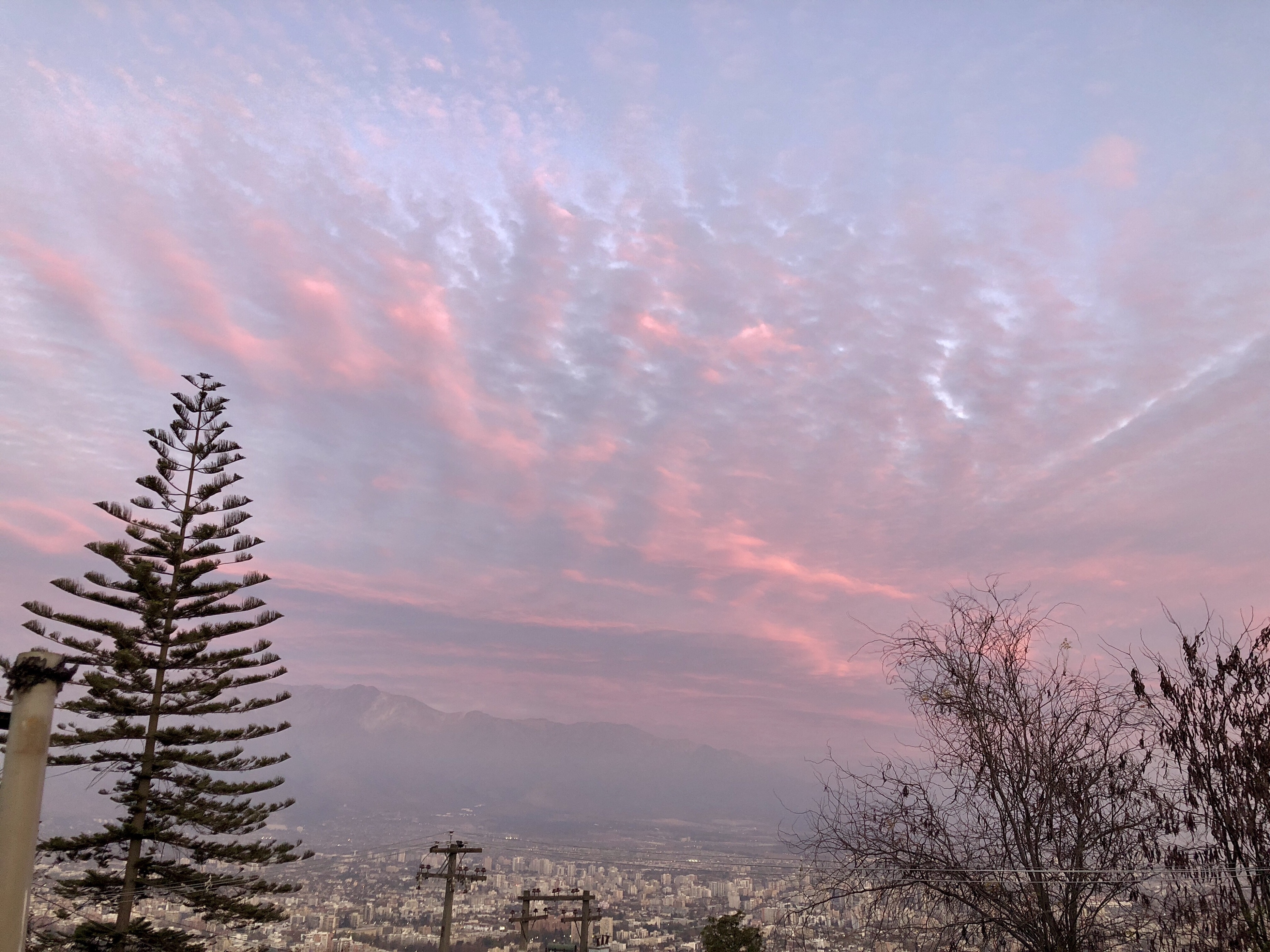 연보랏빛 일몰이 노을로 변하며 바뀌는 산티아고의 일몰은 환상적입니다.