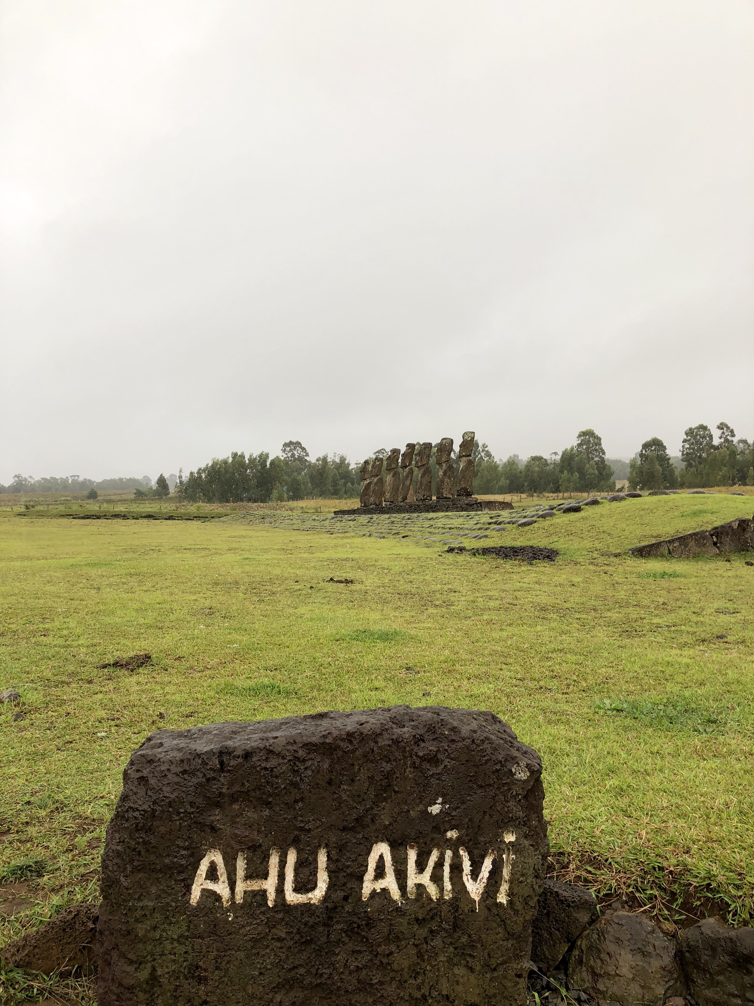 이스터섬의 중앙부, 황량한 들판 한가운데 서 있는 7개의 모아이 석상 아후 아키비 입니다.