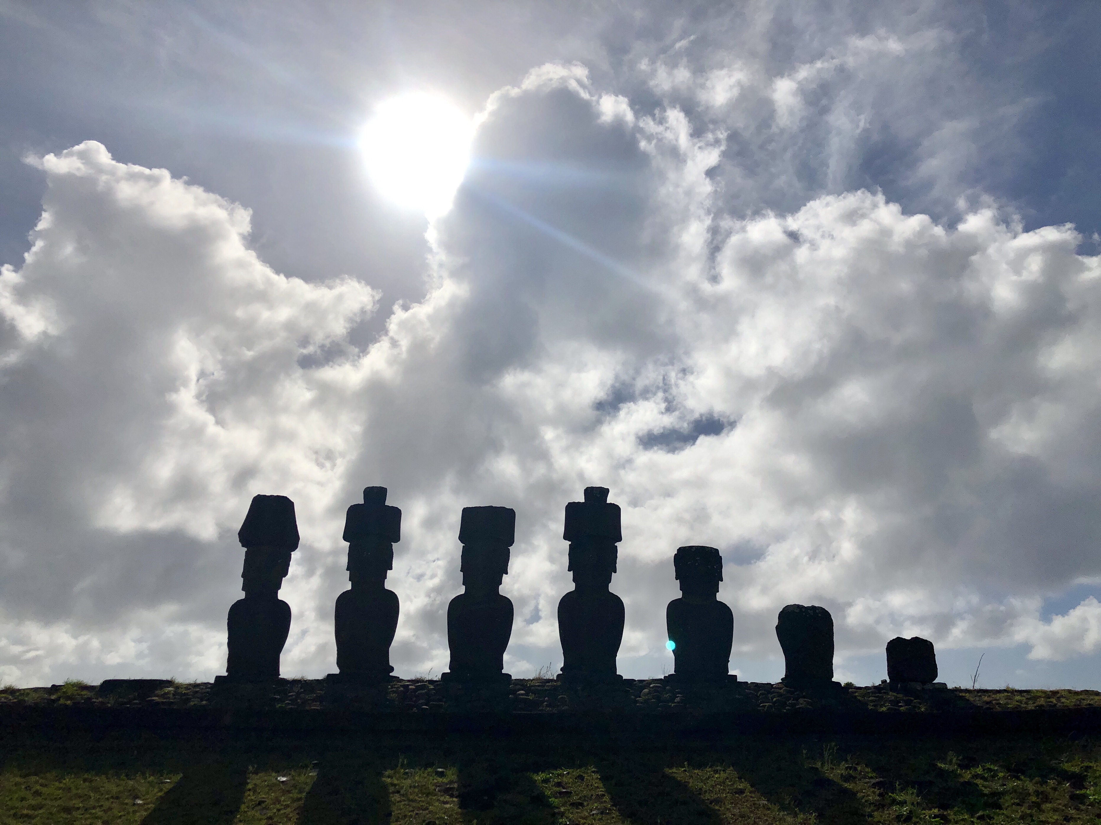 어떤 이유에서 모아이가 생겨났는지 정확하게 밝혀진 건 없으나 늠름하게 선 7개의 모아이 석상과