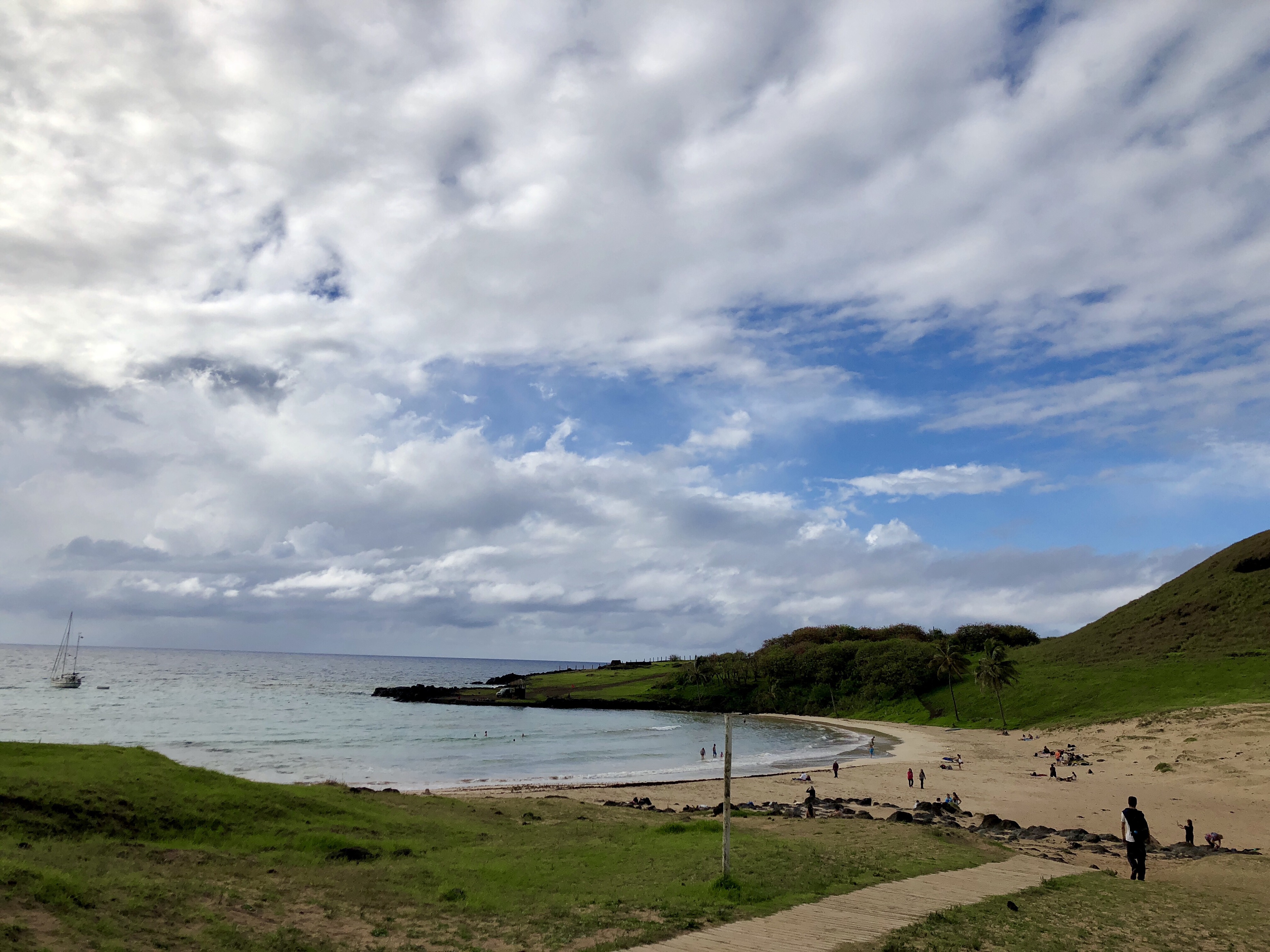 이곳에서 모아이를 바라보며 해변의 경치를 즐길 수 있고 해수욕도 가능합니다.