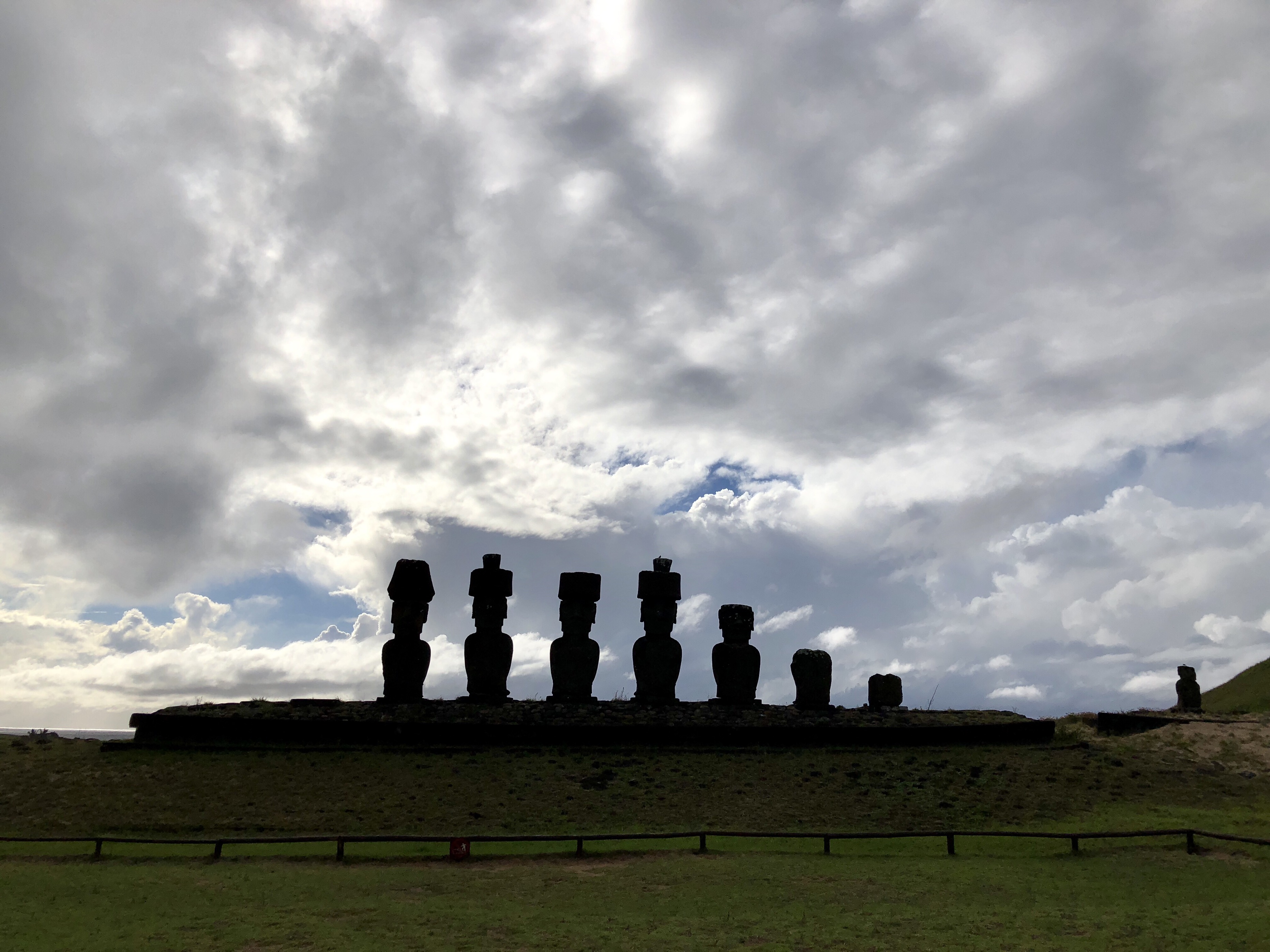 어떤 이유에서 모아이가 생겨났는지 정확하게 밝혀진 건 없으나 늠름하게 선 7개의 모아이 석상과