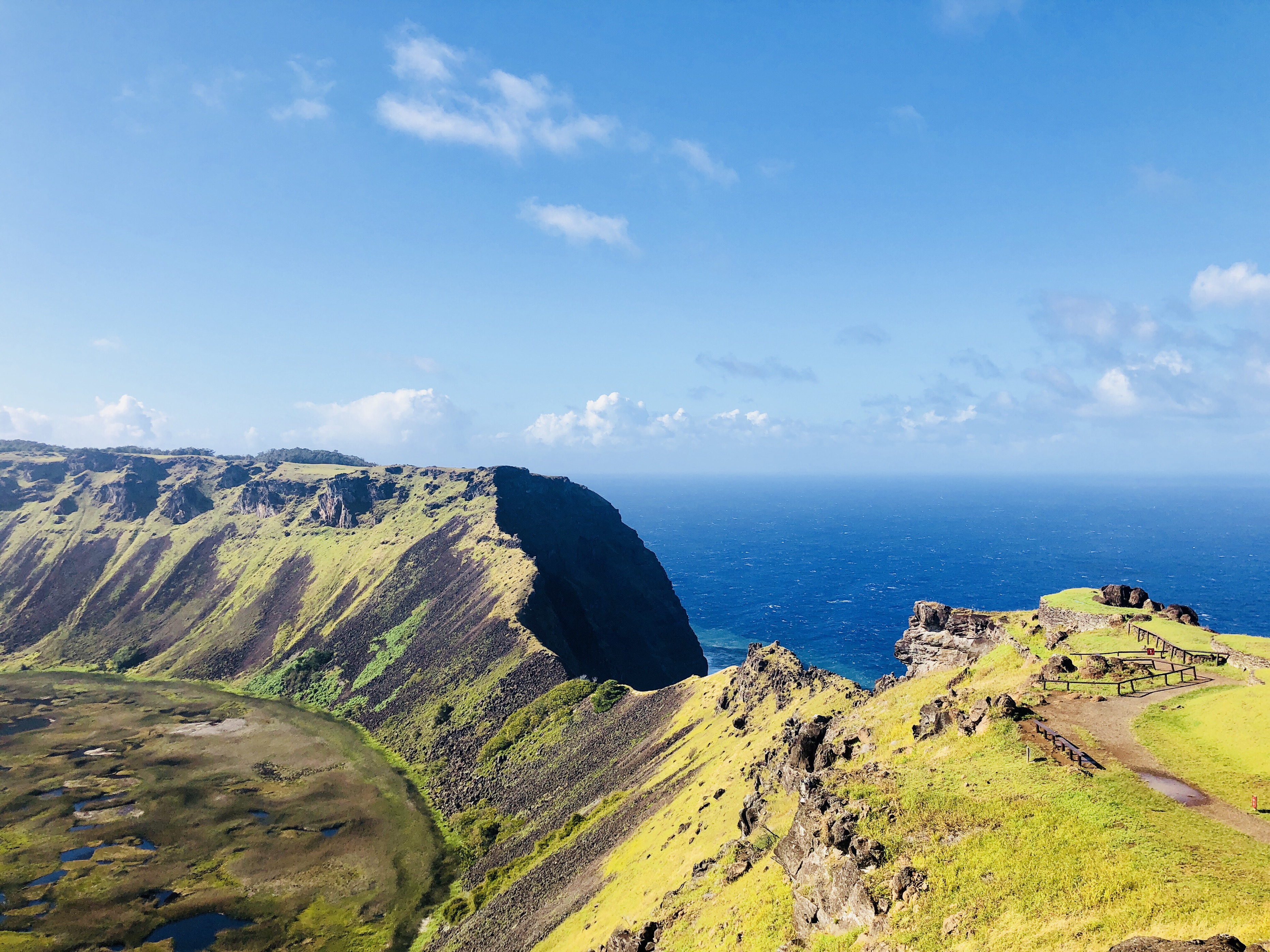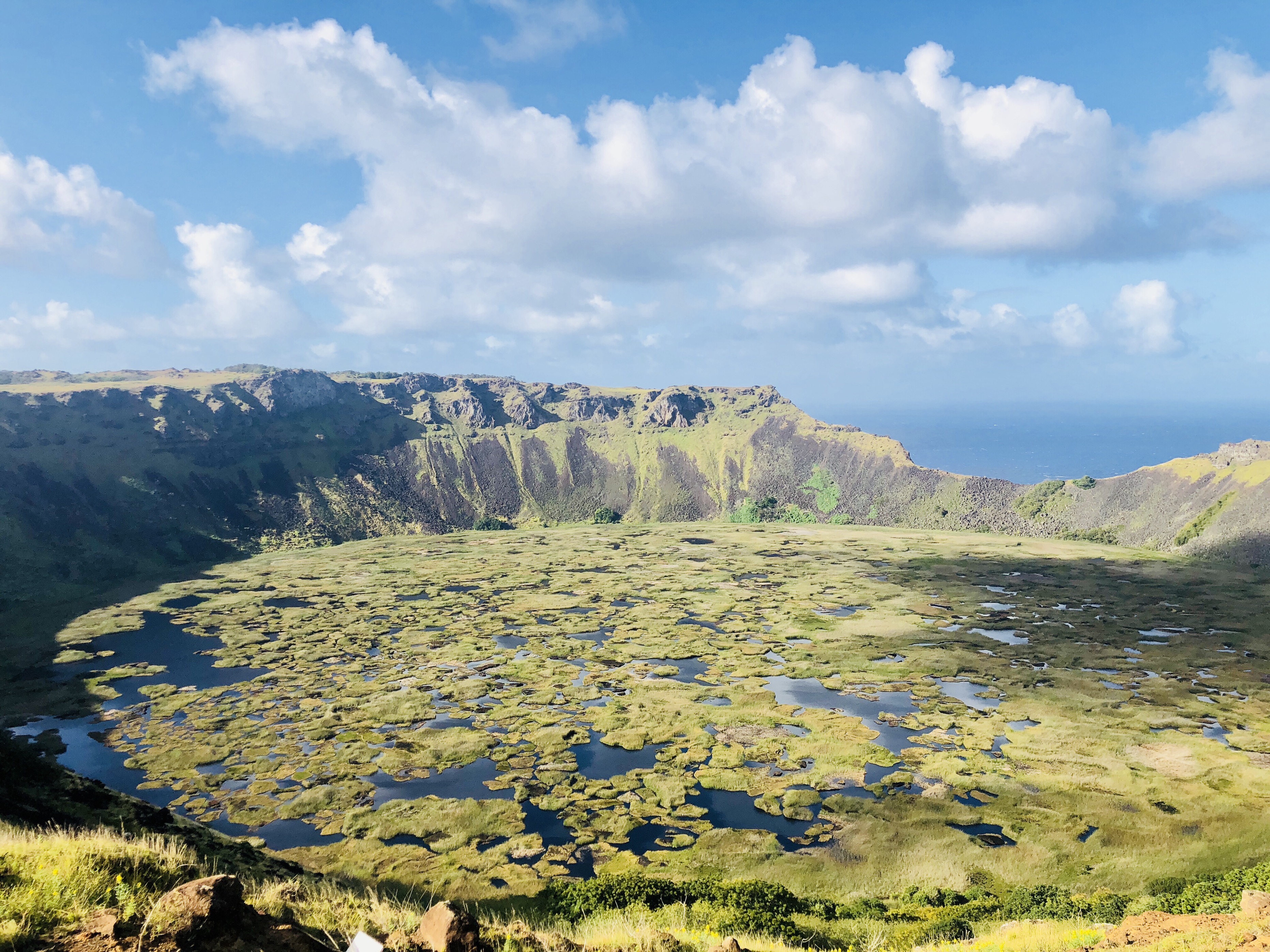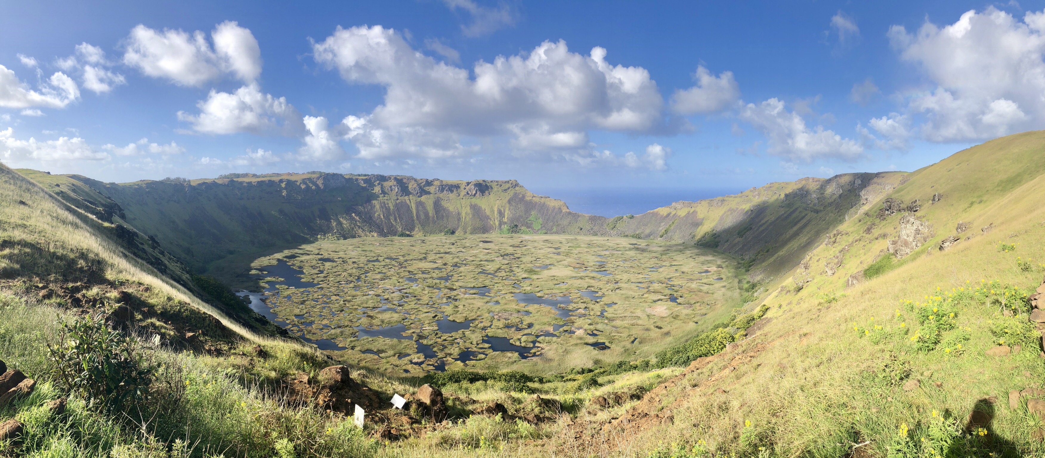 라노 카우 전망대 Mirador Rano Kau 에서 바라본 라노카우는 설명할 수 없는 아름다움을 보여주고 있습니다.
