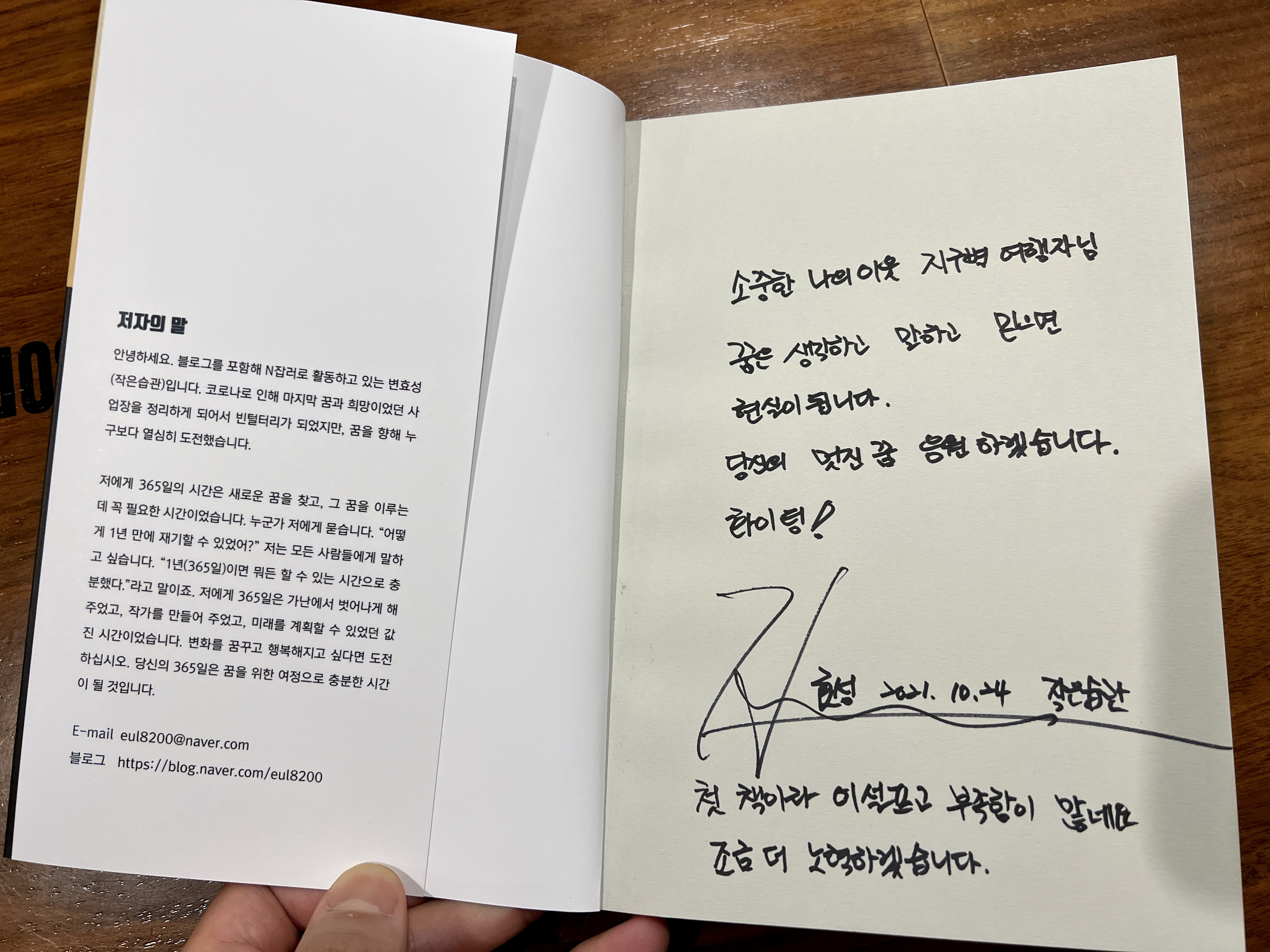 그러다가 책을 통해서 작년 코로나 사태에 어려운 일들을 많이 겪으시고 다시 재기하는 계기로