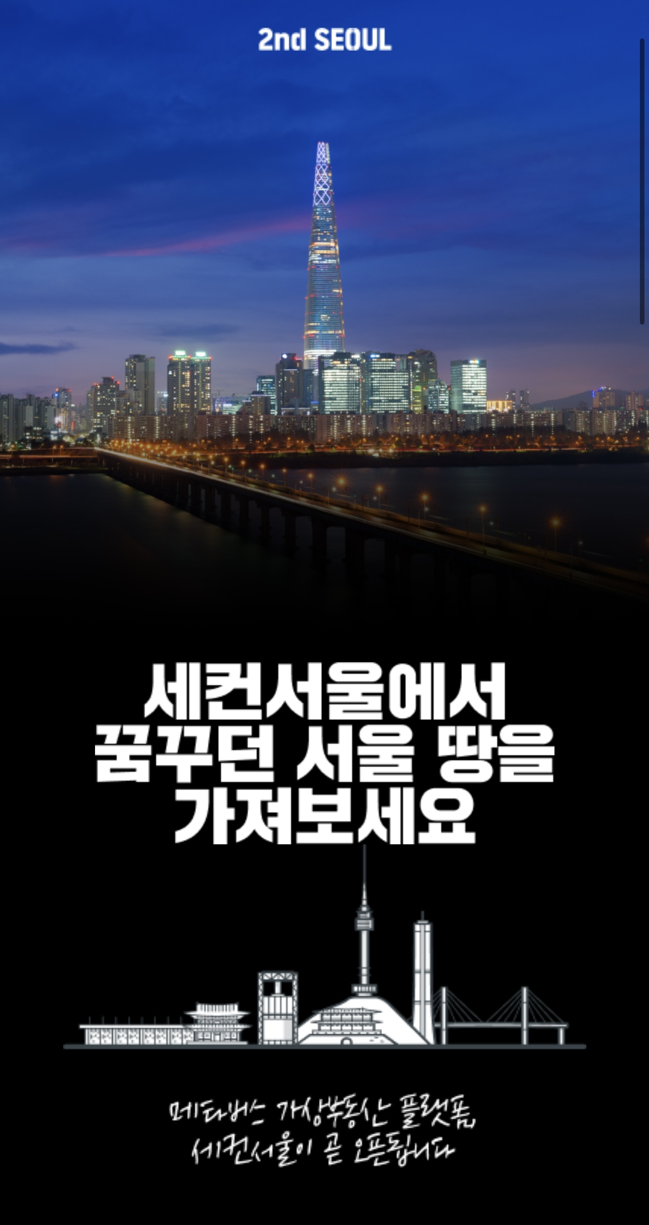 바로 세컨서울이라는 곳에서 메타버스 가상부동상 플랫폼 세컨서울을 통해