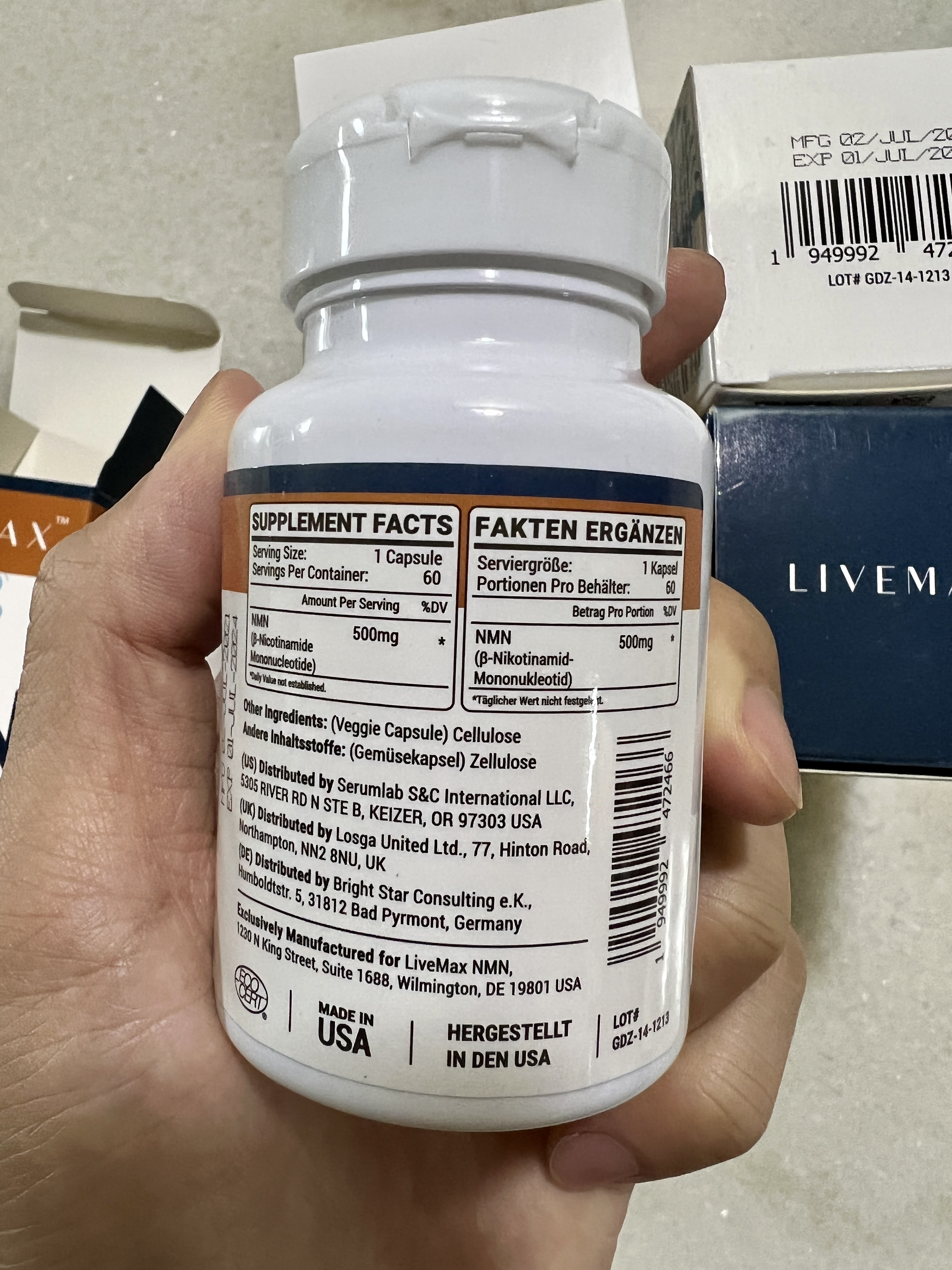 NMN 섭취량은 하루 한알이니 60캡슐짜리 한통으로 두달을 먹을 수 있습니다.