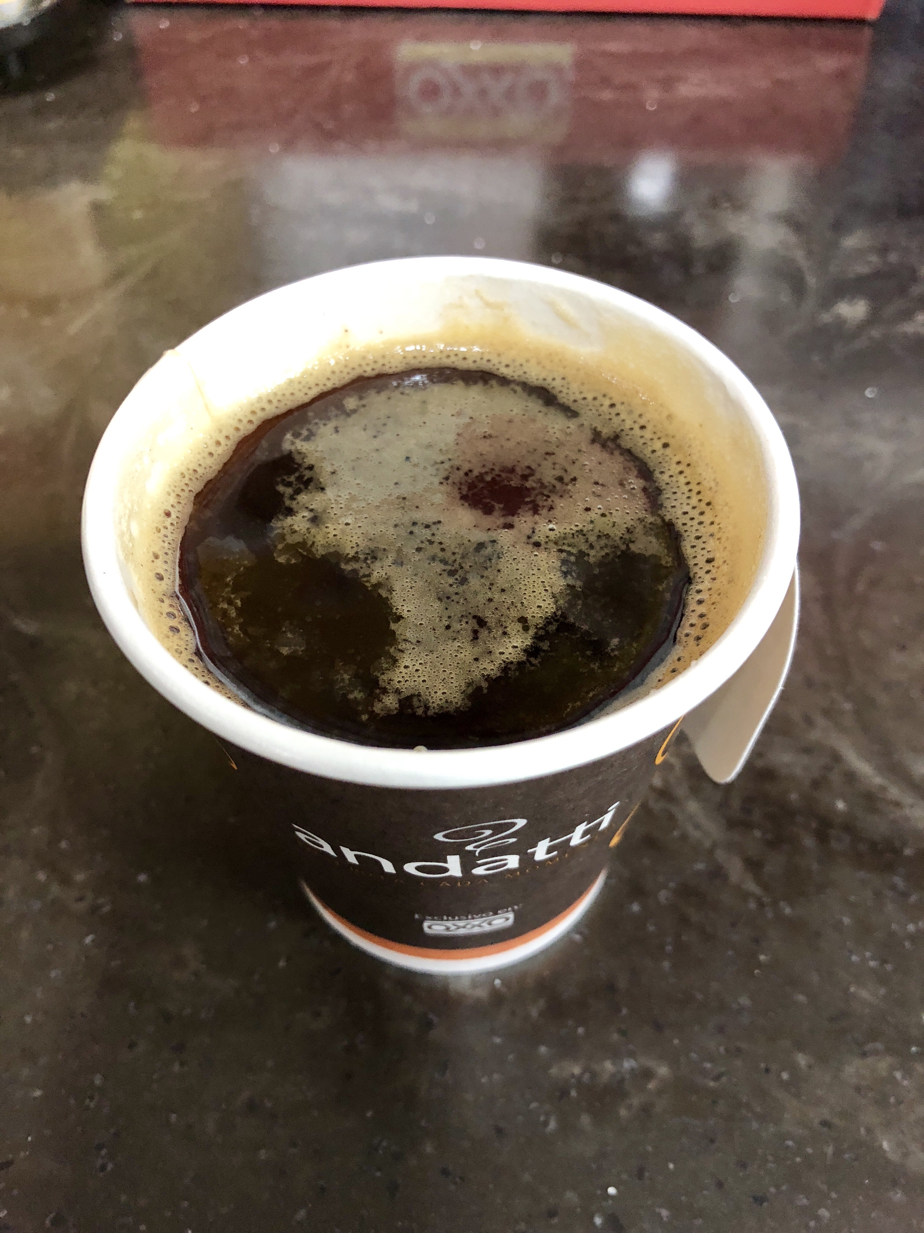 OXXO 편의점에서 커피를 사 마셨는데, 콜롬비아 특유의 진한 향이 느껴지는 것 같다.