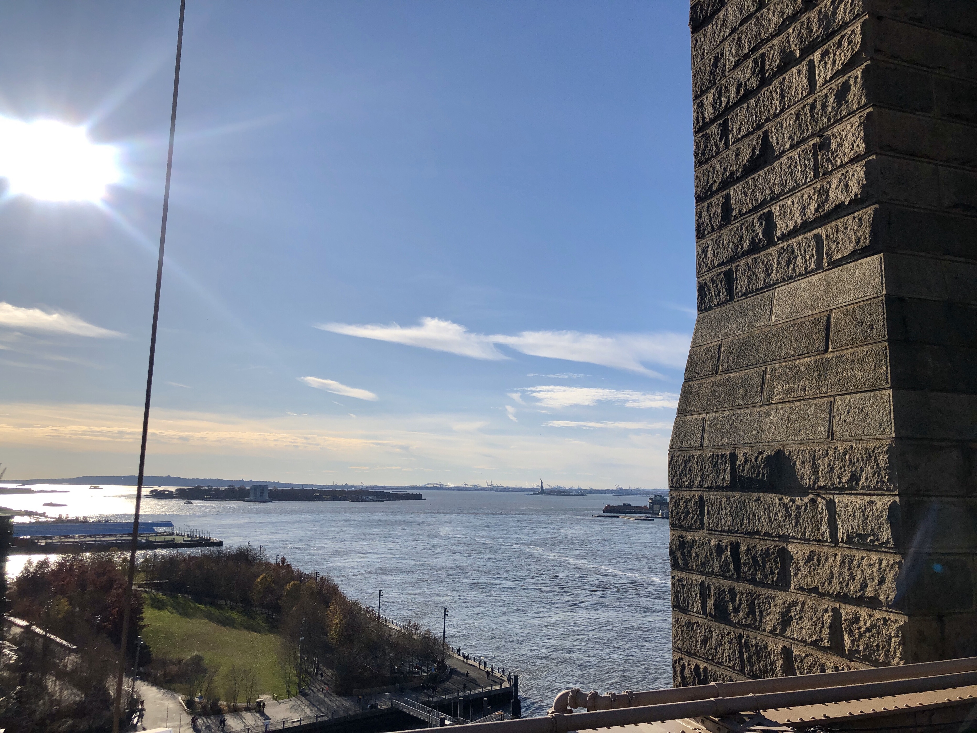 밥도 먹었으니 브루클린 브릿지 위를 건너가 보자~! (멀리 뉴욕의 상징 '자유의 여신상'도 보인다!!)