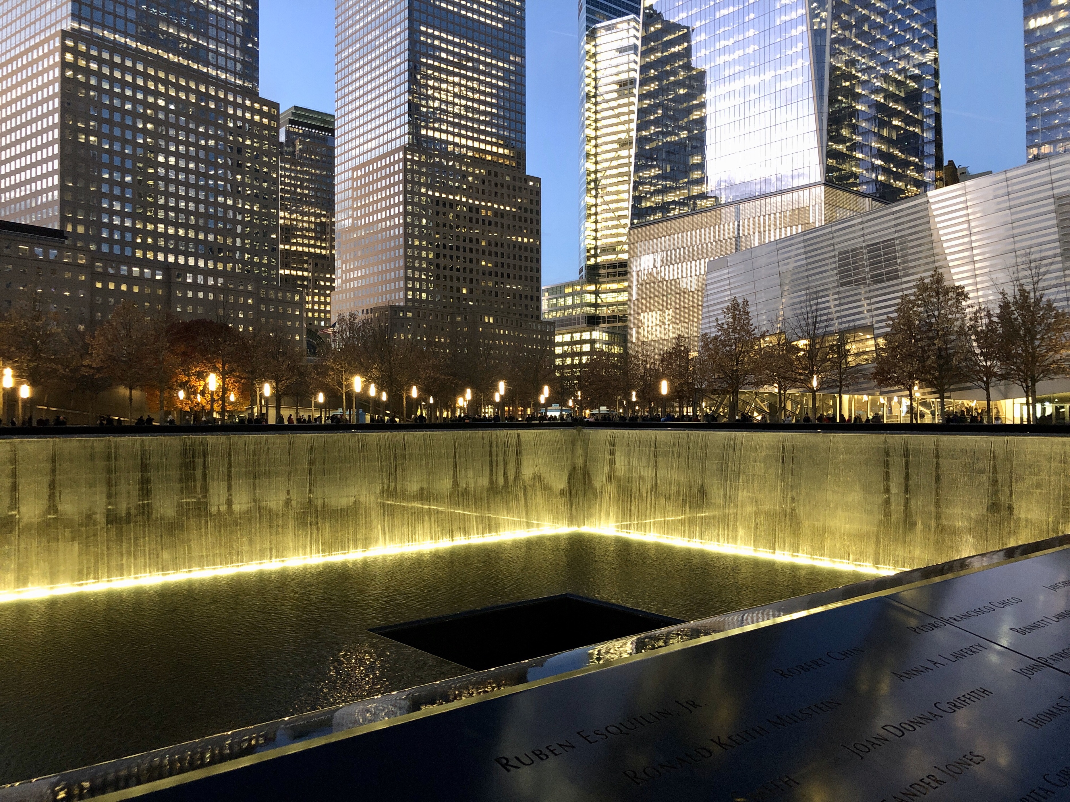 쌍둥이 빌딩이 있던 자리에 두개의 인공폭포를 만들었는데, 여기에서 떨어지는 물은 희생자 유가족의 눈물을 상징한다.