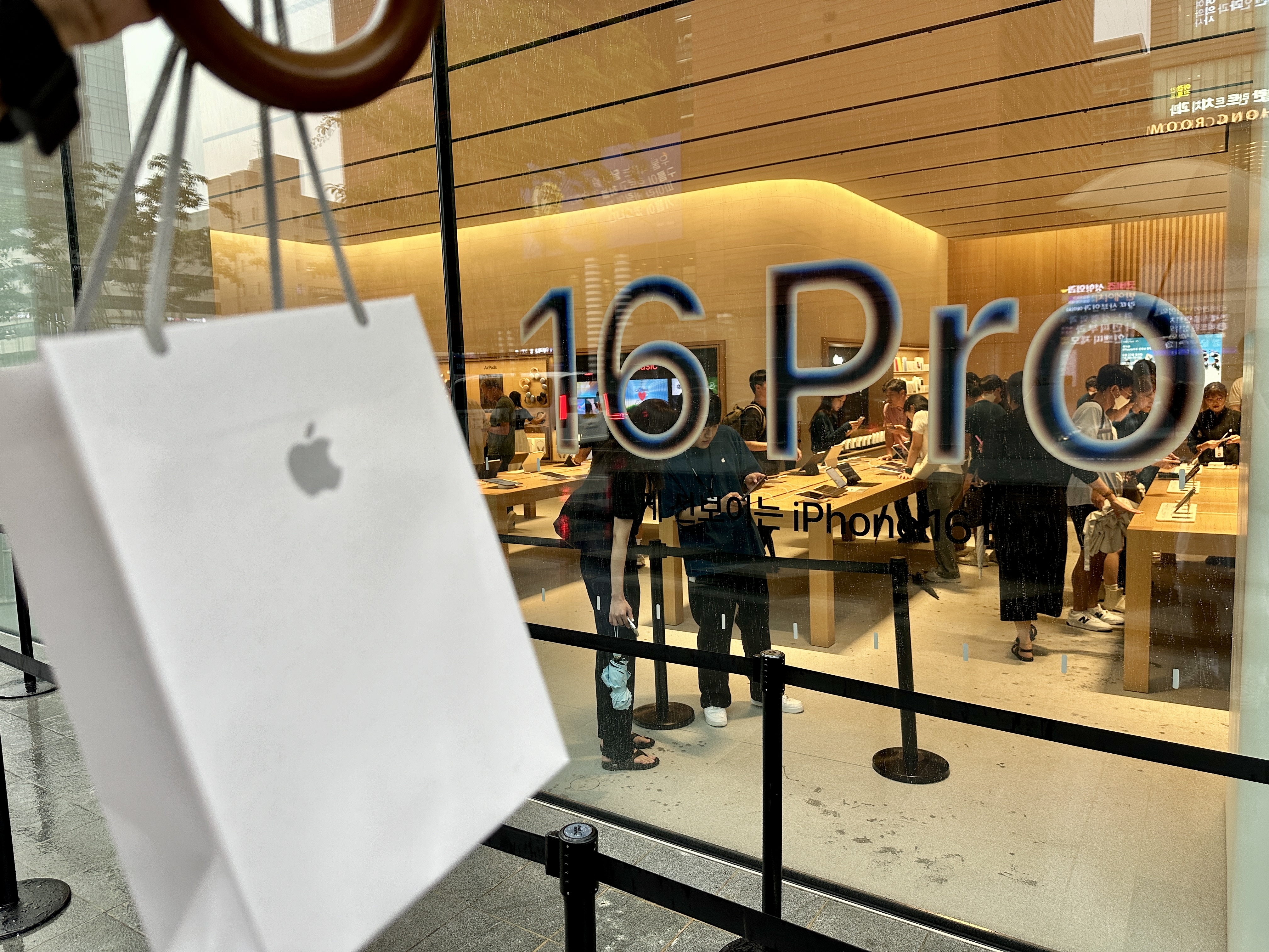 애플의 아이폰 1차 출시국인 첫날 미리 사전예약해 둔 아이폰 16 프로맥스를 픽업하러 정해진 시간에 강남 애플스토어로 향했습니다. 비도오고 아이폰 16에 대한 실망 기사가 많았는데도 역시나 애플과 아이폰 걱정은 하는게 아니라는걸 입구의 대기중인 인파를 보며 또 한번 실감 할 수 있었습니다.