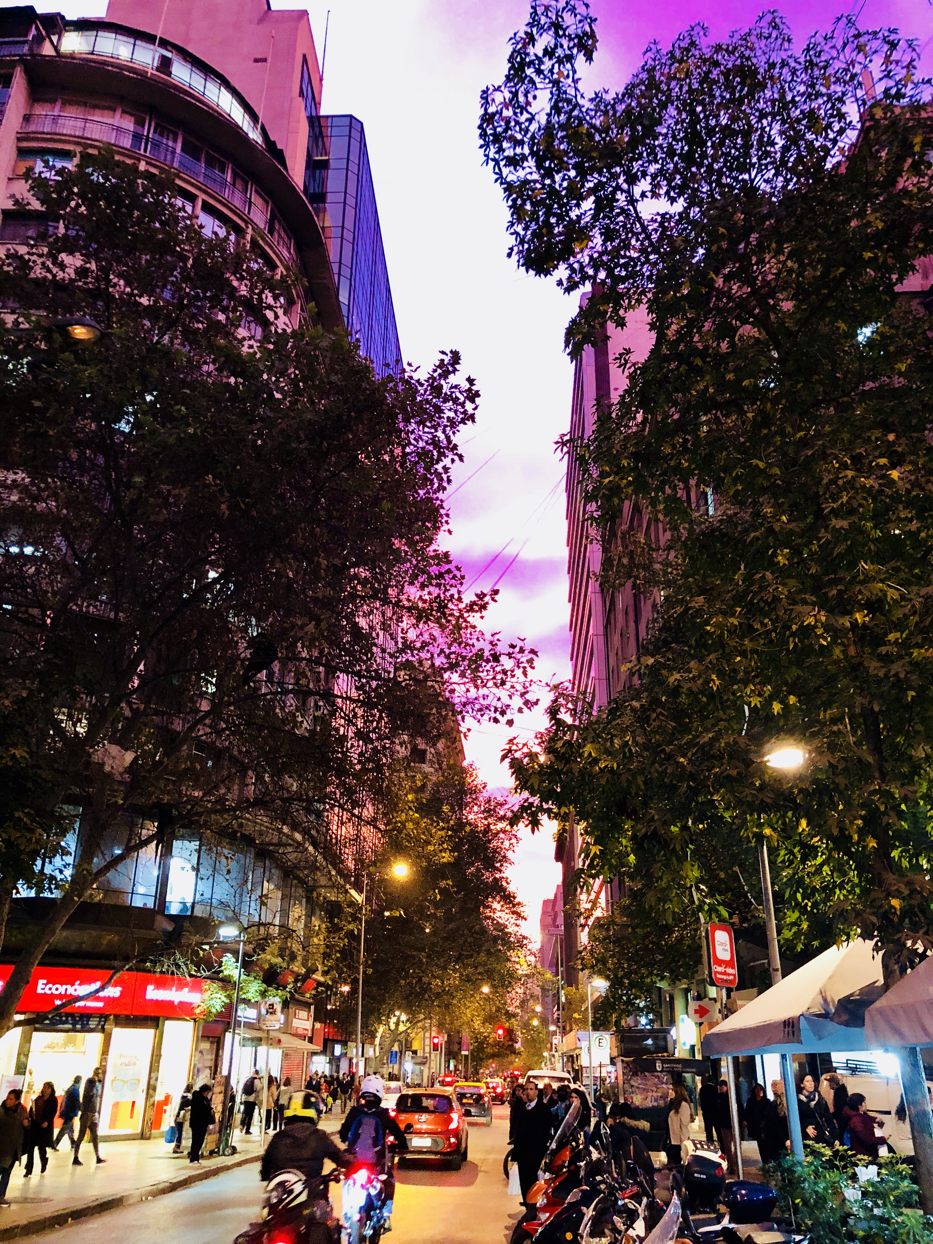아름다운 산티아고의 일몰을 건물 사이로 보는 것도 큰 매력이 있습니다.